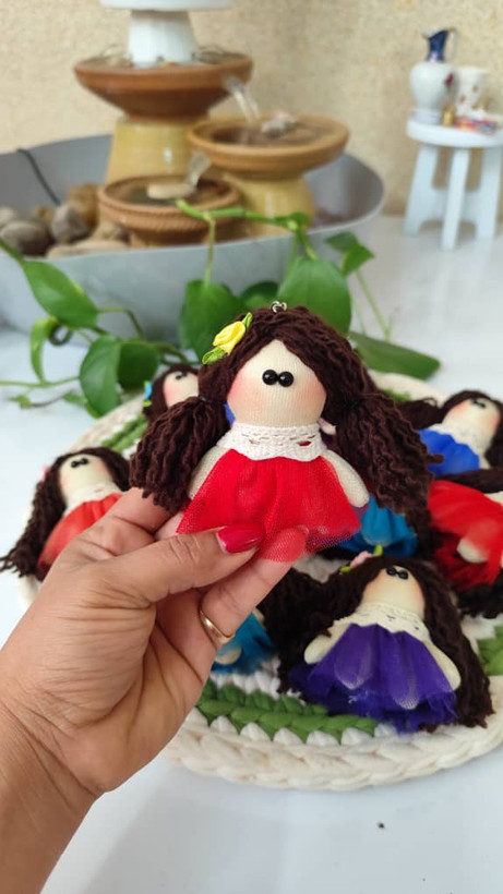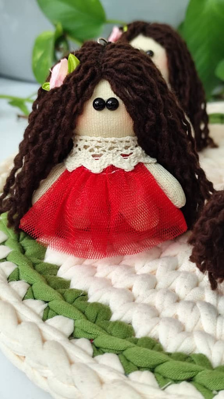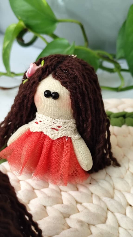 پاسوییچی پارچهای دختر روسی ۸ سانتی | عروسک موفرفری دستدوز