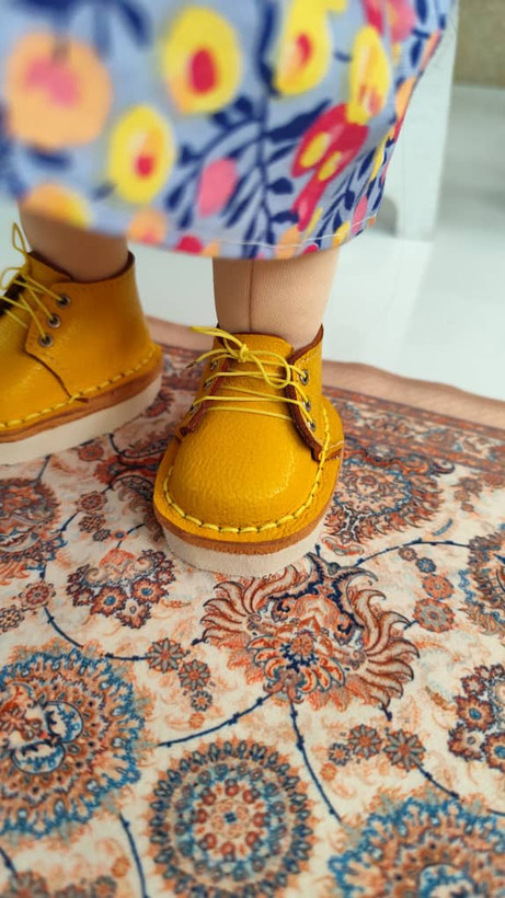 این عروسک بامزه کاملاً دستدوز شده و از بهترین پارچهها و متریالها ساخته شده. ویژگی خاص این عروسک کفشهای چرم طبیعیاشه که بهشکل شیک و منحصر به فرد طراحی شده.
