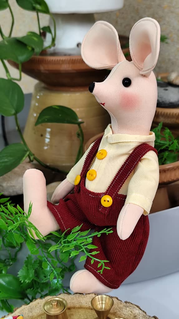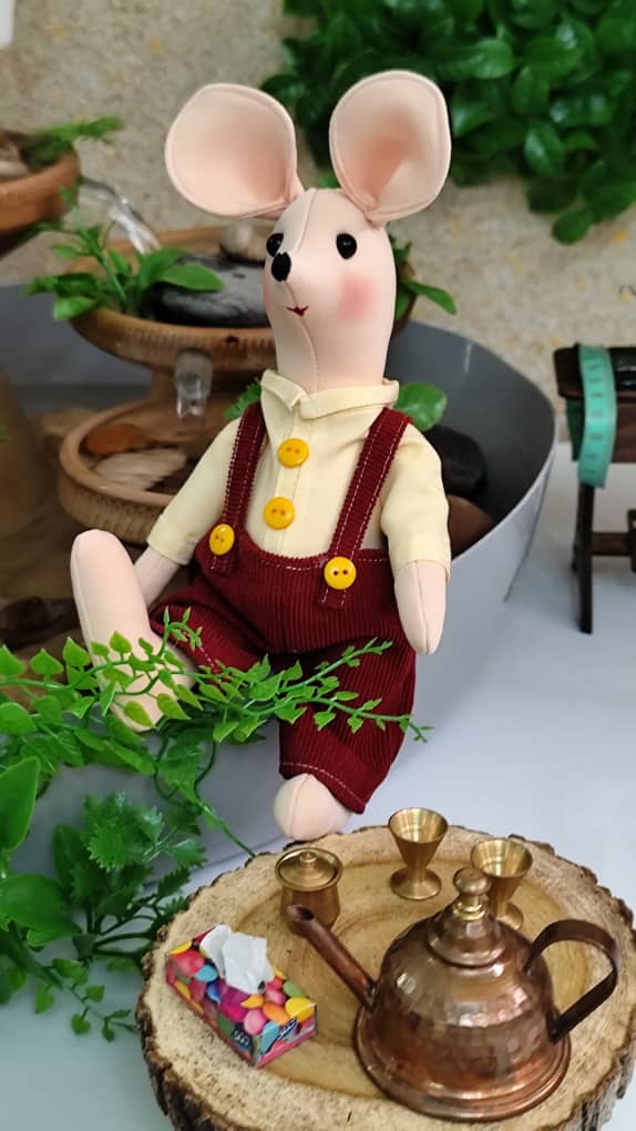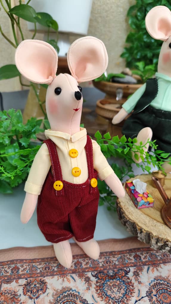 عروسک پارچهای موش پدر، یک عروسک دستدوز با قد ۳۵ سانتیمتره که با دقت و ظرافت از بهترین پارچهها ساخته شده.