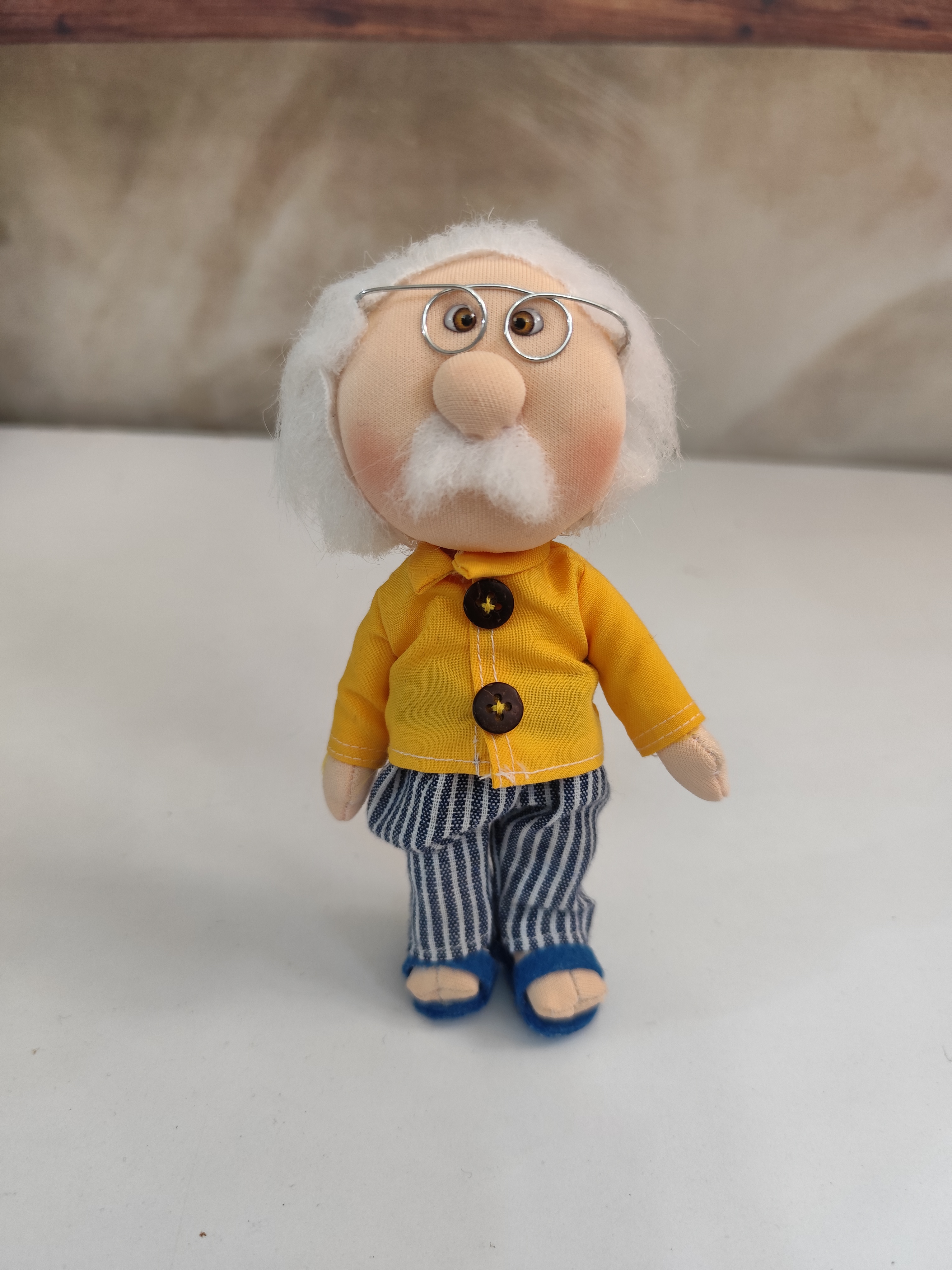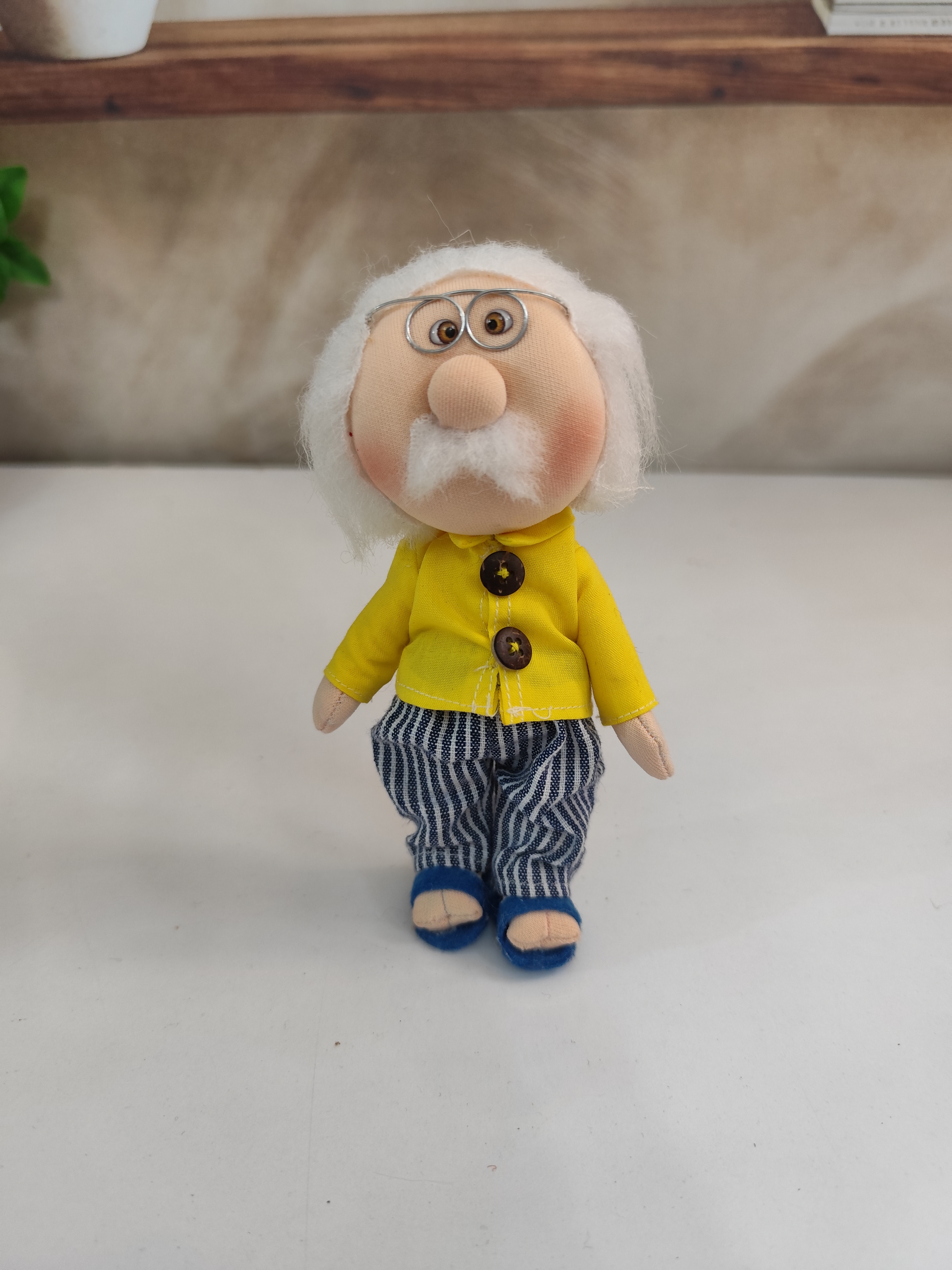عروسک پارچهای آقاجون ۱۶ سانتی، یه نسخه کوچیک، شیرین و جذاب از آقاجونهای سنتی ایرانیه که با عشق و دقت دستدوز شده.