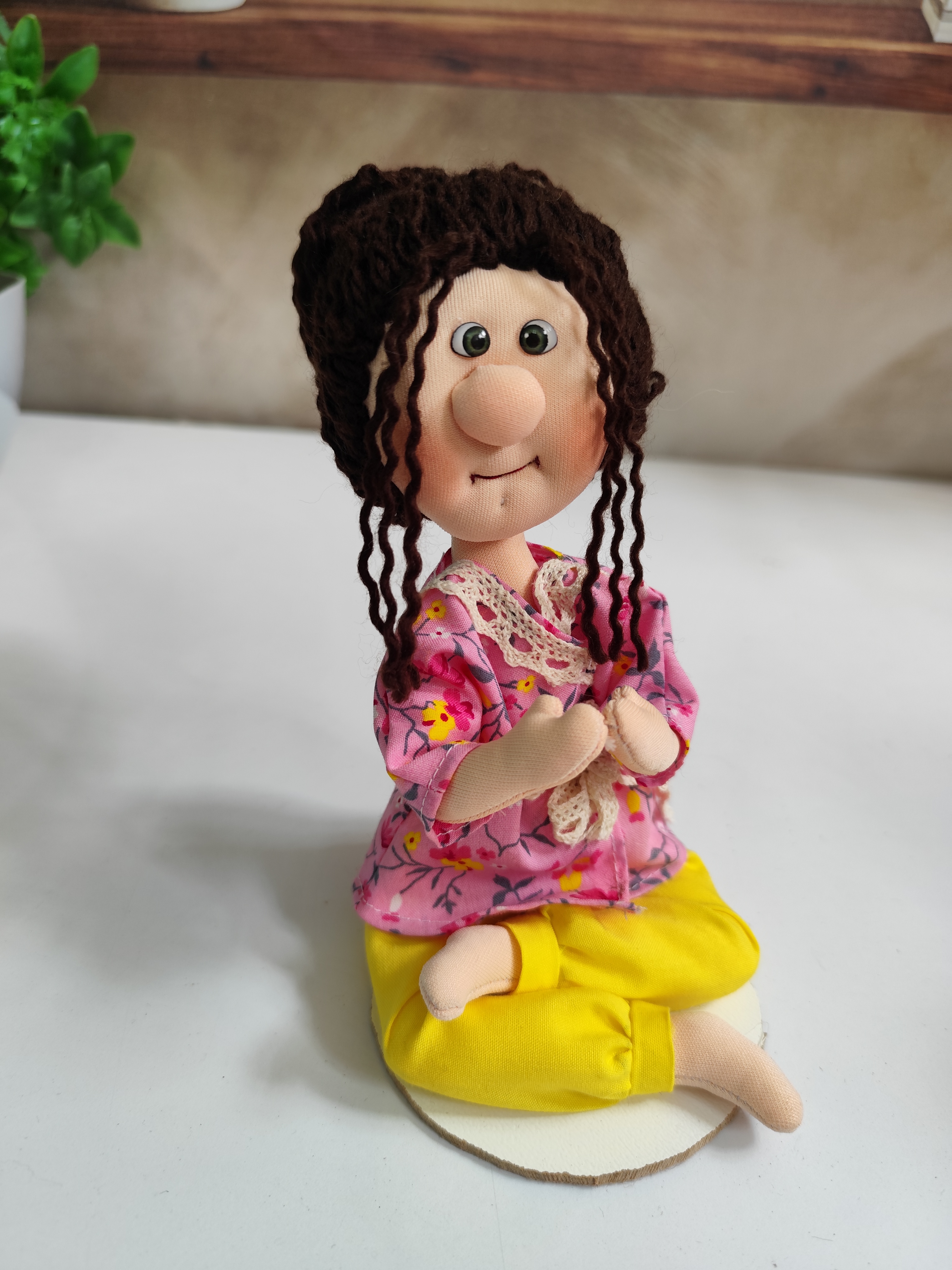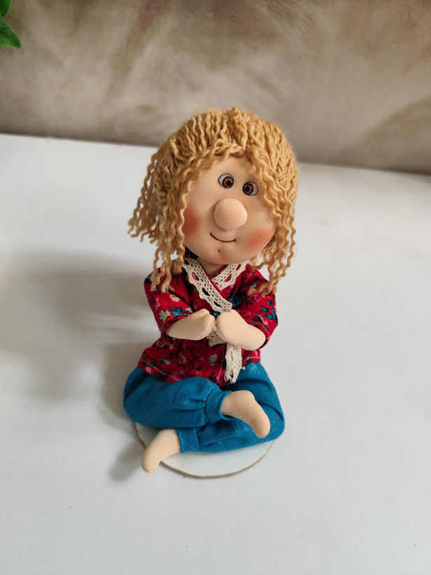 این عروسک پارچهای دختر یوگایی، یک عروسک فانتزی و خاصه که در حالت نشستهی یوگا طراحی شده و با موهای فرفری جذاب و چهرهای آرام، حس آرامش و انرژی مثبت رو منتقل میکنه.